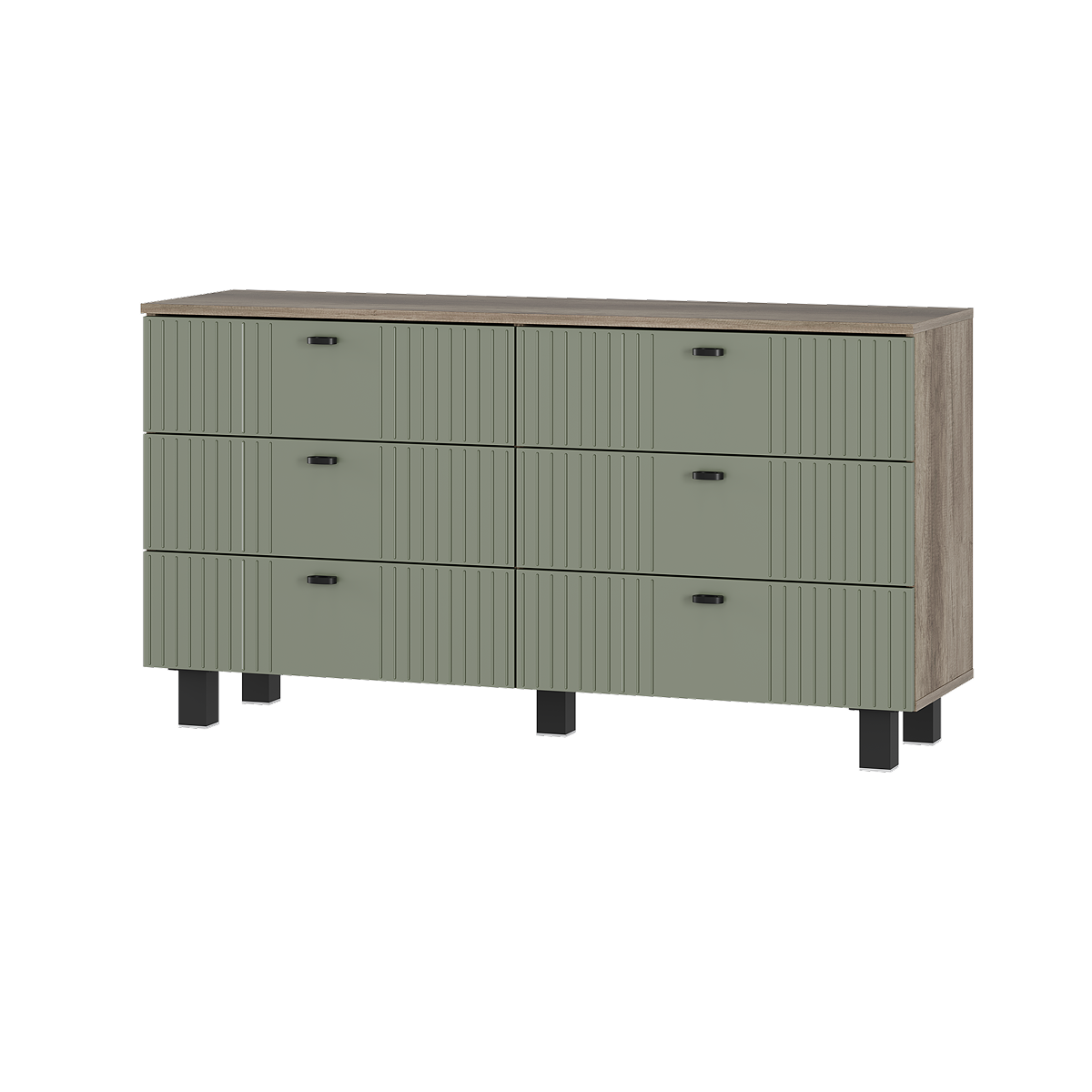 Комод «Олива» КМ-04— это элегантный и функциональный элемент для любого интерьера. Фрезеровка на фасадах создает интересные текстурные контрасты и визуальные акценты. Кроме того, этот элемент декора также помогает скрыть мелкие загрязнения, что упрощает уход за мебелью. Металлически накладные ручки на ящиках обеспечивают удобство в использовании.