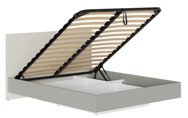 Двуспальная кровать с "эффектной" парящей конструкцией и ортопедическим основанием с подъемным механизмом.