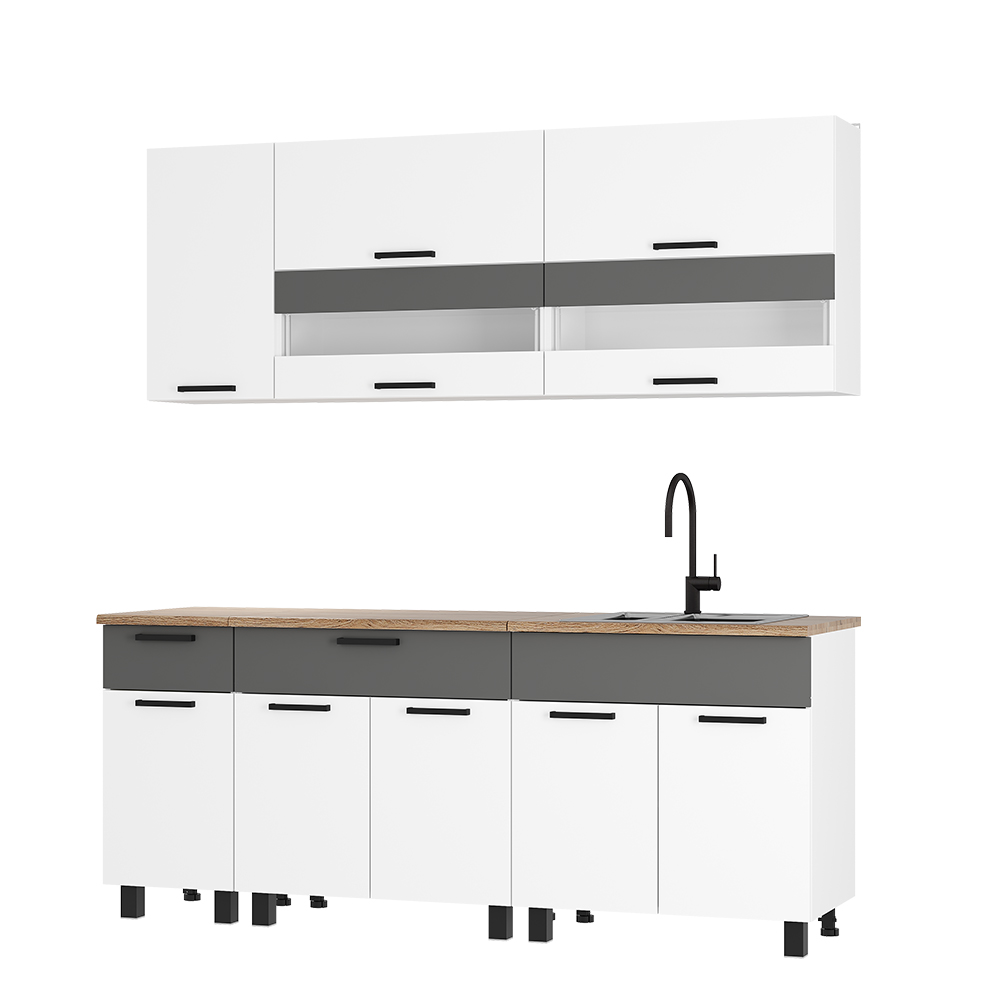 Кухонный гарнитур Монтана 2000 мм белый/графит (БТС) в Полевском - polevskoj.mebel-e96.ru