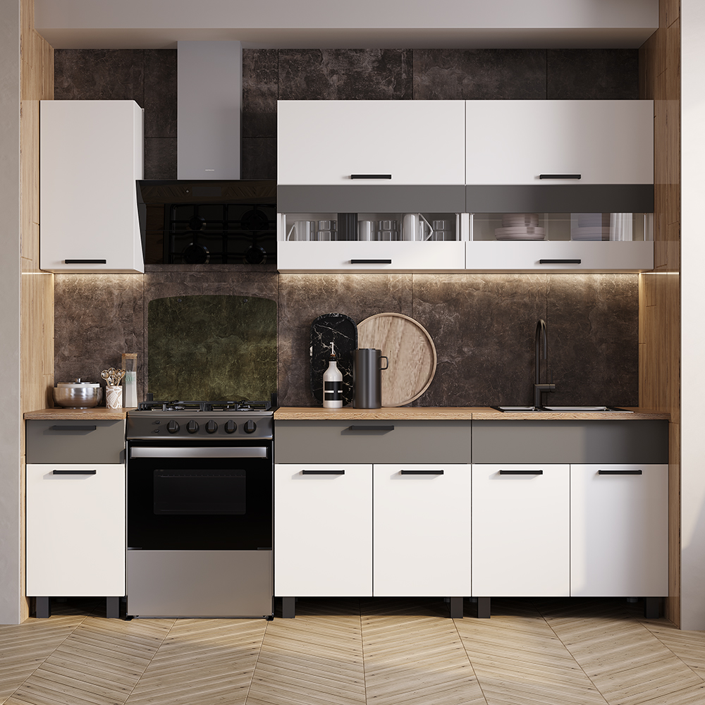 Кухня «Монтана» 2,0 м - это трендовое сочетание цветов, современный дизайн, функциональность и высокое качество материалов, элегантные стеклостворки, компактность и вместительность.