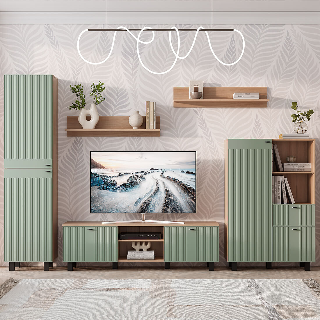 Гостиная "Олива" - это идеальное сочетание современного дизайна и функционала. Модель выглядит презентабельно и стильно. Матовые фасады из МДФ пастельного оттенка с оригинальной фрезеровкой будут отлично гармонировать как с насыщенными и нестандартными, так и с классическими решениями в интерьере.