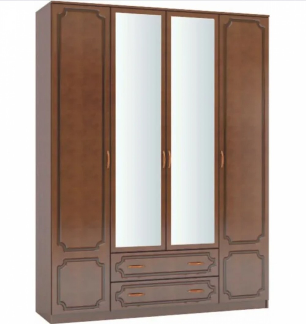 Шкаф 1600 мм ШК-4 с 2 зерк. ЛАК Орех Тёмный (БМ)