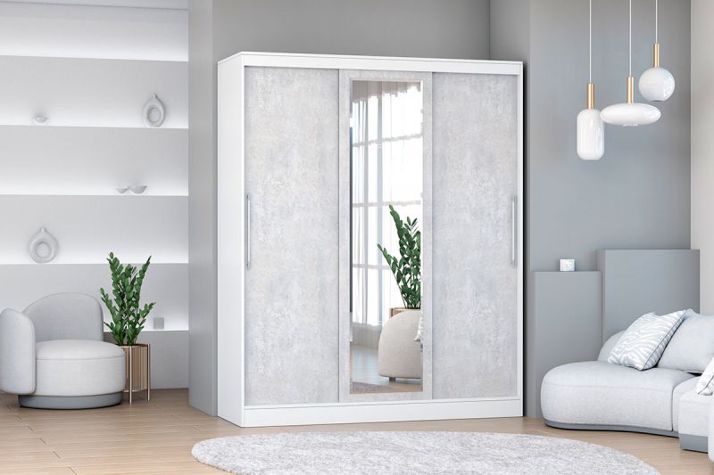 Шкаф-купе 1700 мм 3-х дверный с 1-м зеркалом (арт. 012) белый/цемент (Диал) в Полевском - polevskoj.mebel-e96.ru