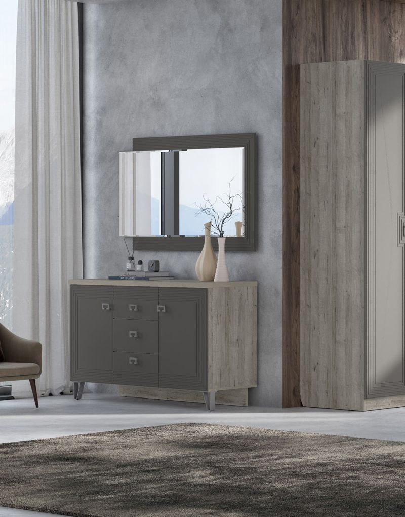 Комод 2дв, 3ящ Лежер КМ-3103 дуб серый/холст вулканический(СанТан)