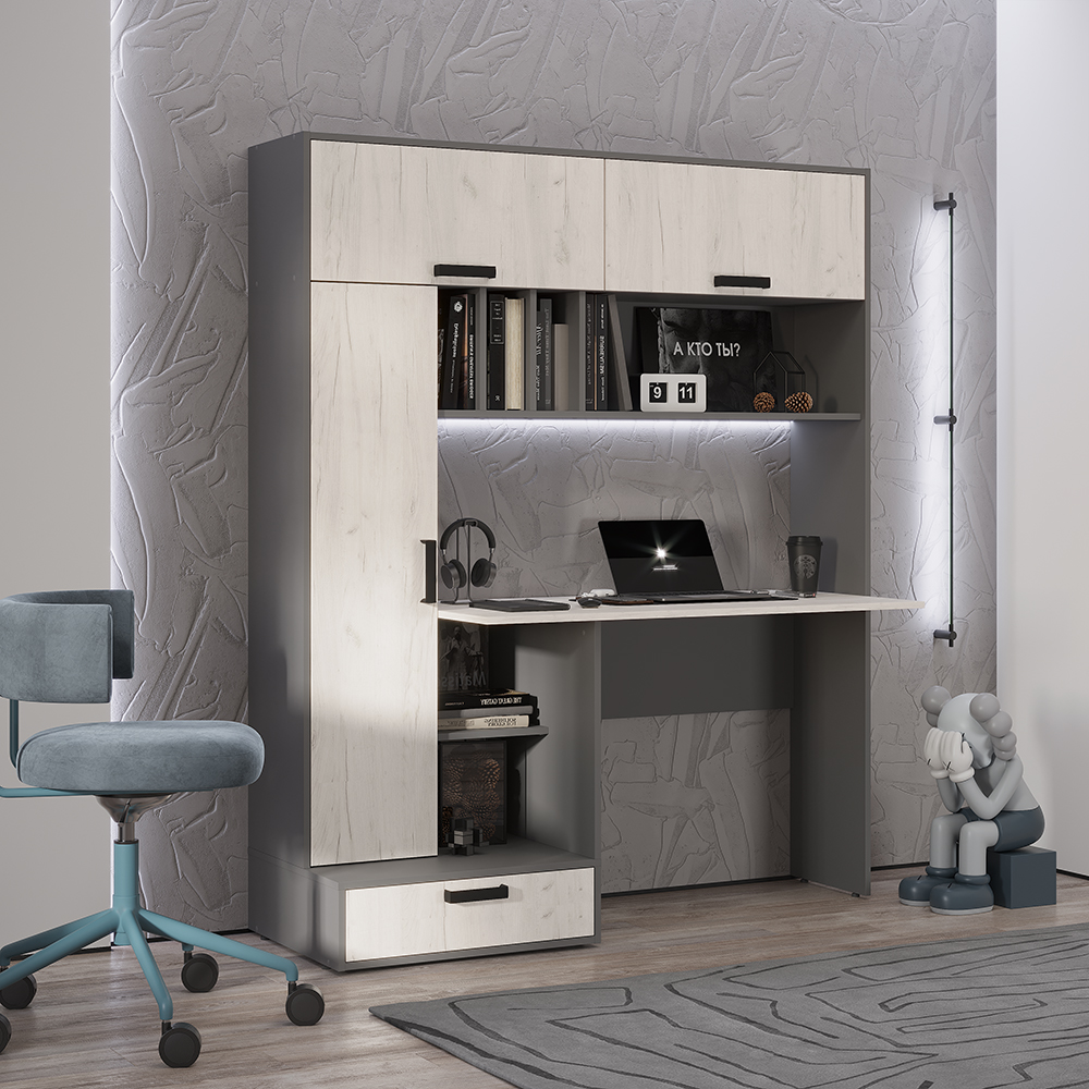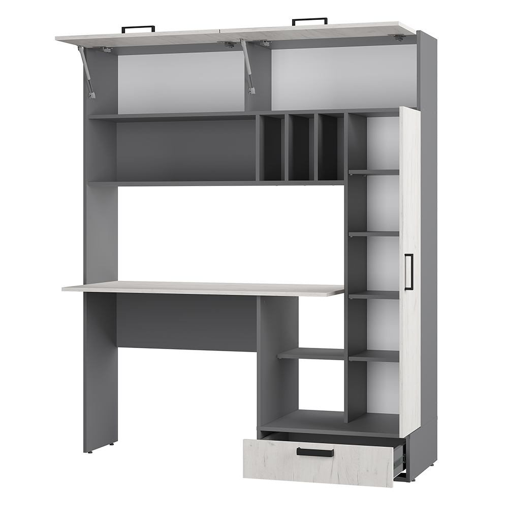 Стол письменный "Техно" - многоуровневая функциональная конструкция. Большое количество мест для хранения. Трендовое сочетание оттенков исполнения, современный внешний вид. Уникальное сочетание конструктивных компонентов, позволяющее использовать модель для различных целей. Большая вместительная столешница, обеспечивающая комфорт при работе.