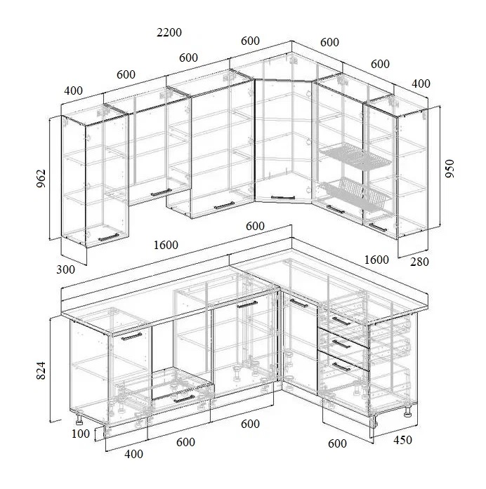 Артикул: A58373Угловой кухонный гарнитур Трансильвания 2200*1600 мм Sanvut